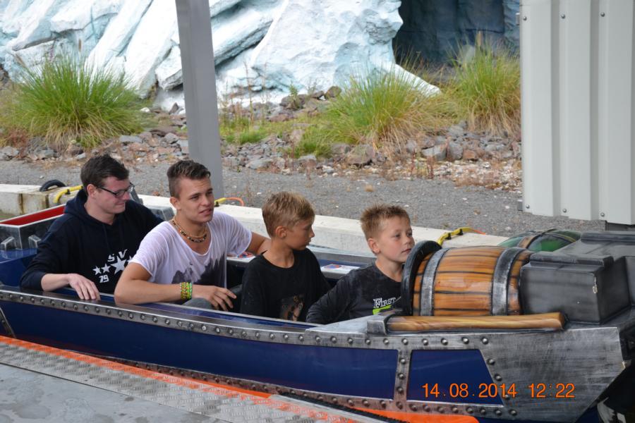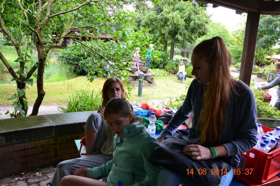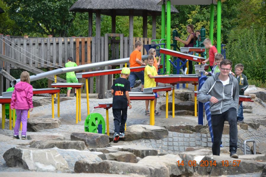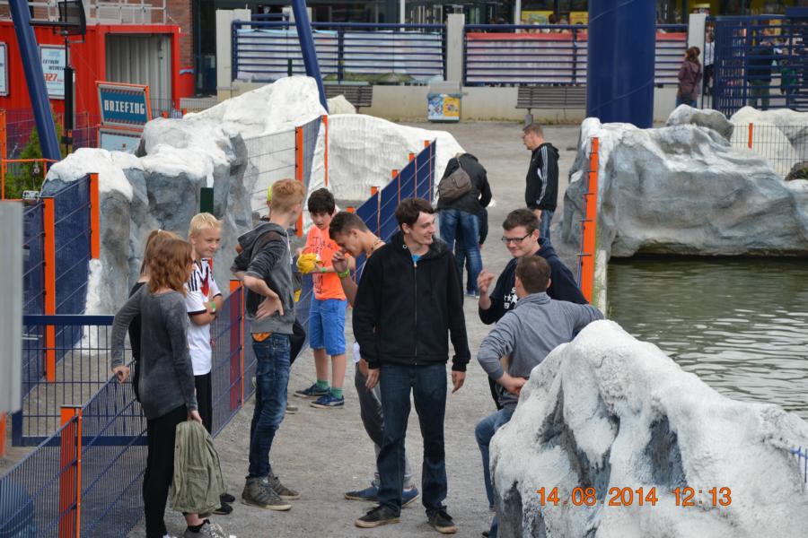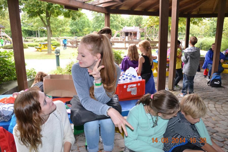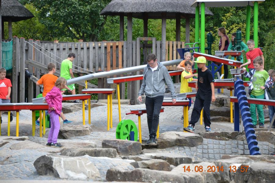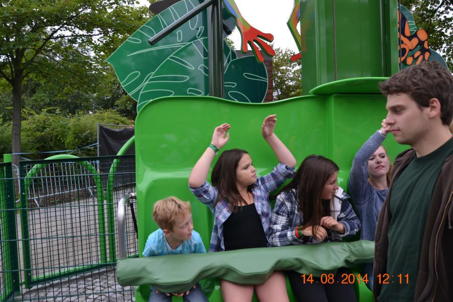 Im Park gab es eine Wasserbahn, bei der jeder Besucher von oben bis unten nass wurde. Unglücklicherweise hatte nicht jedes Kind Wechselsachen dabei, sodass die Betreuer bei manchen Kindern mit
