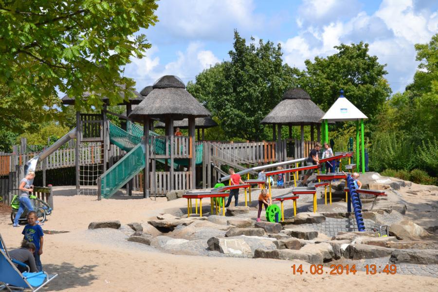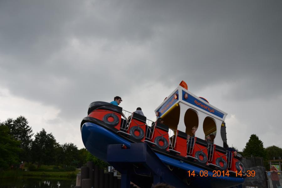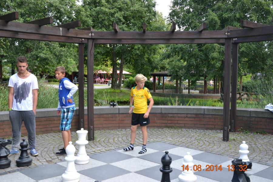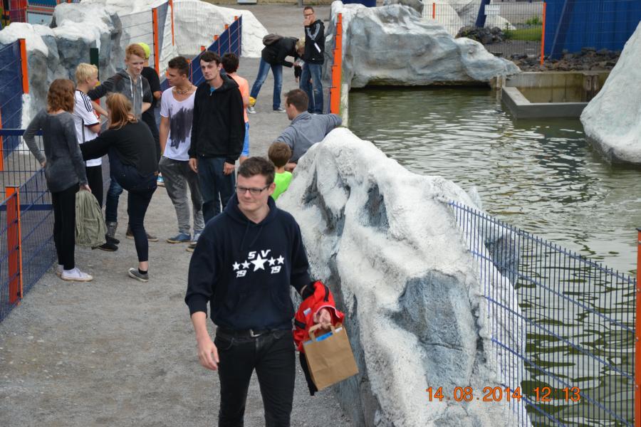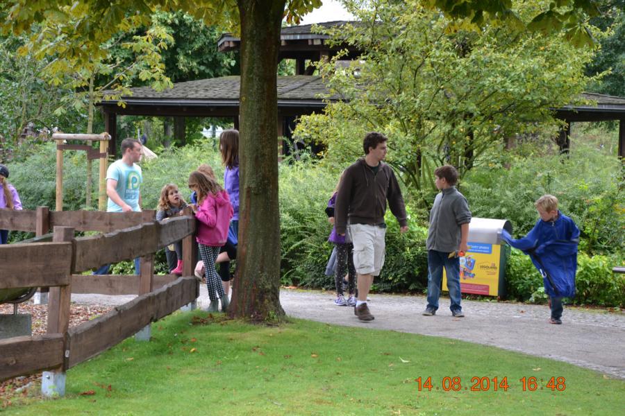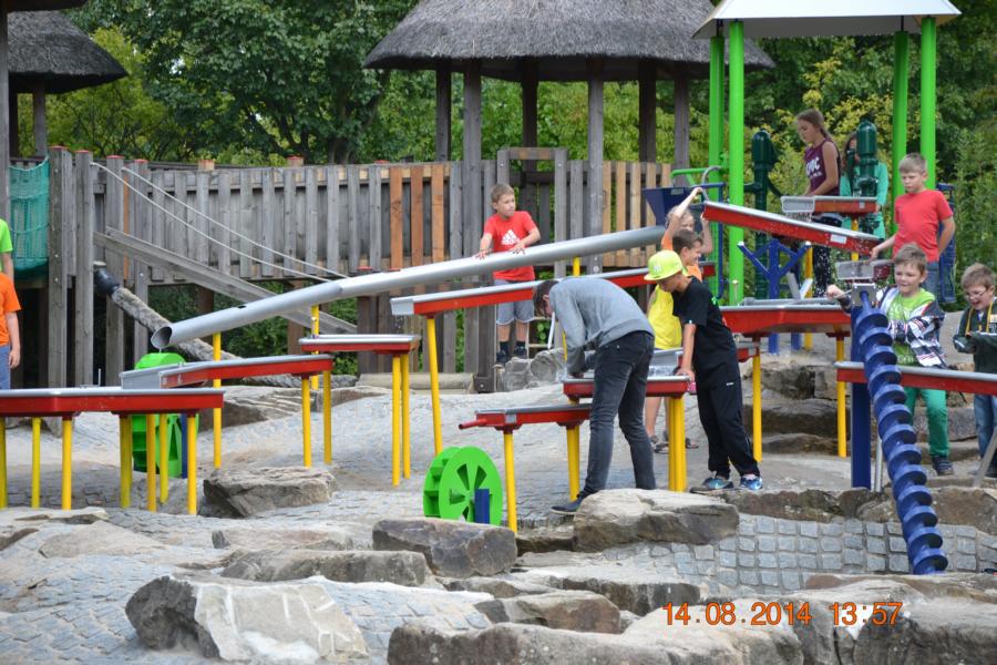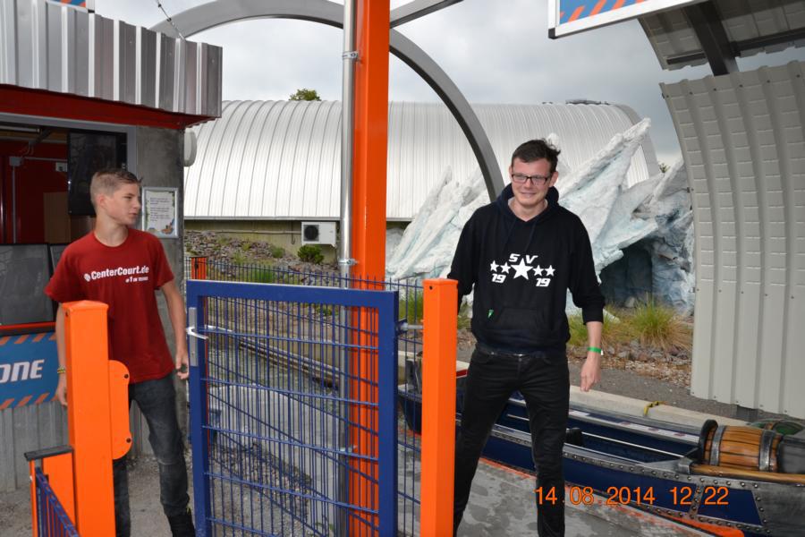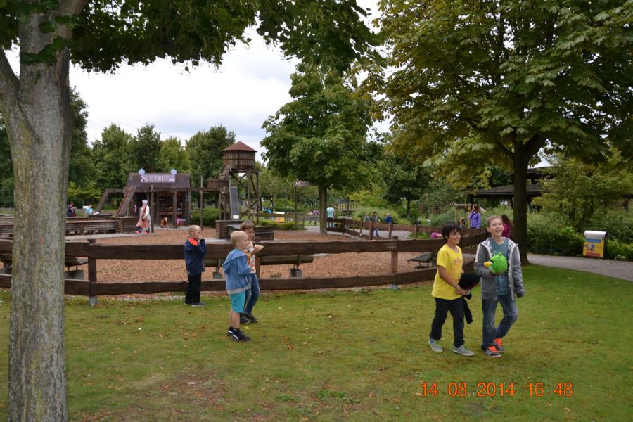 Im Park gab es eine Wasserbahn, bei der jeder Besucher von oben bis unten nass wurde. Unglücklicherweise hatte nicht jedes Kind Wechselsachen dabei, sodass die Betreuer bei manchen Kindern mit
