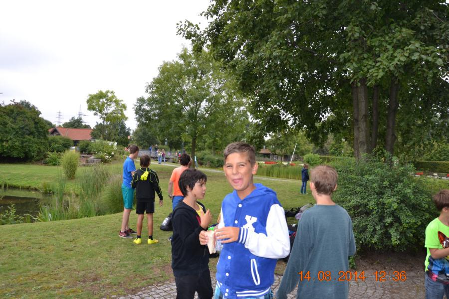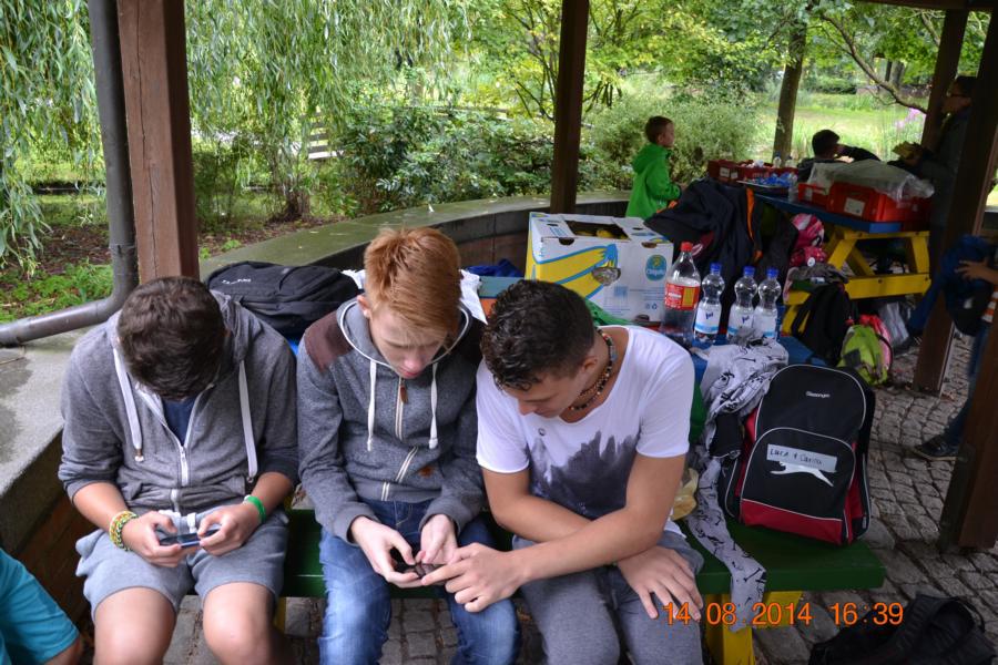 Am Mittwoch durfte sich jeder im Bastelzelt nochmal so richtig austoben, bevor es dann am Donnerstag zum großen Ausflug nach Oberhausen in den Abenteuerpark ging. Natürlich waren die Armbänder weiterhin ein Highlight, aber viele der Kinder bekamen auch Spaß daran, ihre mitgebrachten T-Shirts zu bemalen. Im Nachmittag gab es dann den inzwischen traditionellen Schokobrunnen, bei denen sich die Kinder Obst und Kekse in flüssige Schokolade tunken dürfen. Spuren der braunen Masse im kompletten Gesicht sowie an Armen und in den Haaren waren da schon vorprogrammiert.